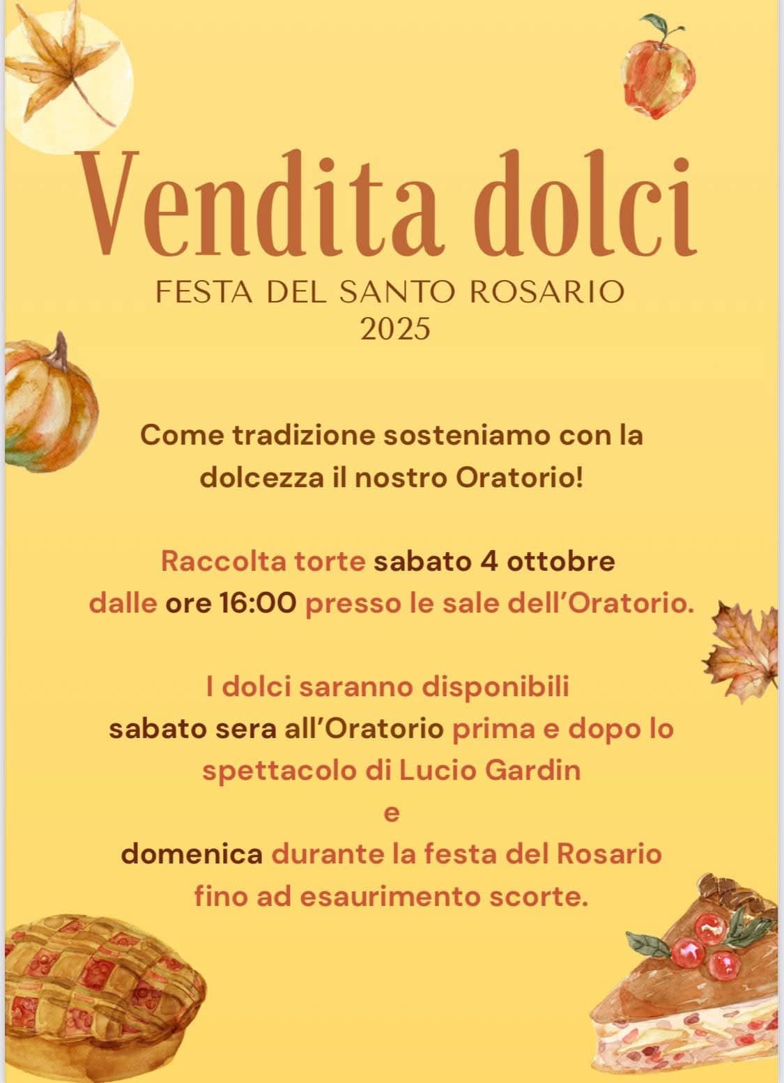 Vendita dolci – Festa del Santo Rosario 2025 a Lizzana