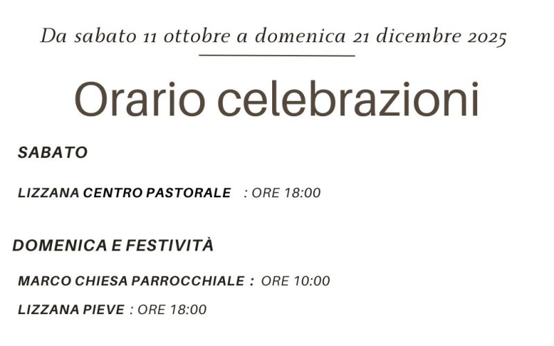 LIZZANA CENTRO PASTORALE : ORE 18:00