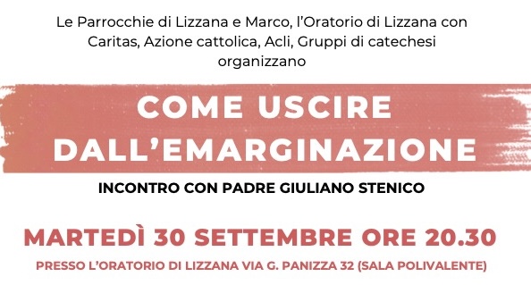 Come uscire dall’emarginazione. Martedì 30 settembre Oratorio Lizzana
