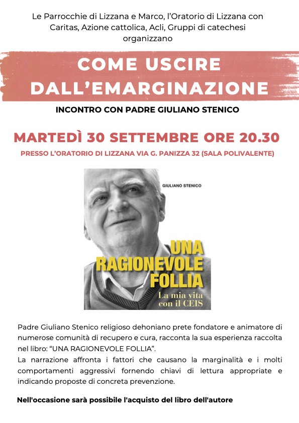 Martedì alle ore 20.30 a Lizzana in Oratorio presentazione del libro di Padre Stenico “Come uscire dall’emarginazione”