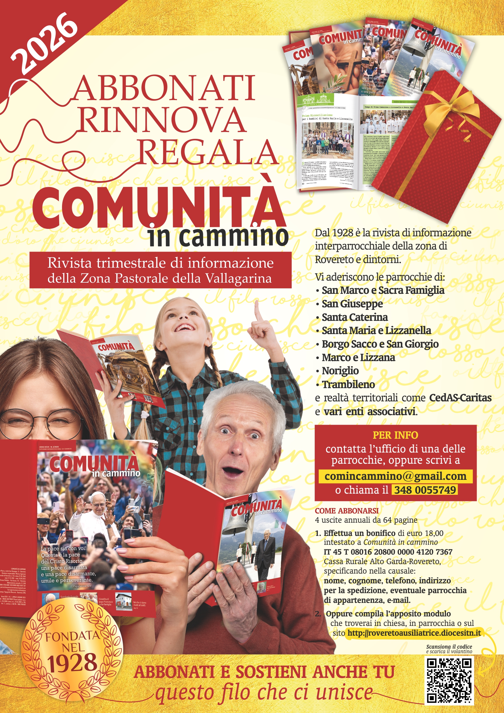 - Si raccolgono presso la sagrestia gli abbonamenti nuovi o di rinnovo del Notiziario delle parrocchie di Rovereto, al costo di € 18,00
