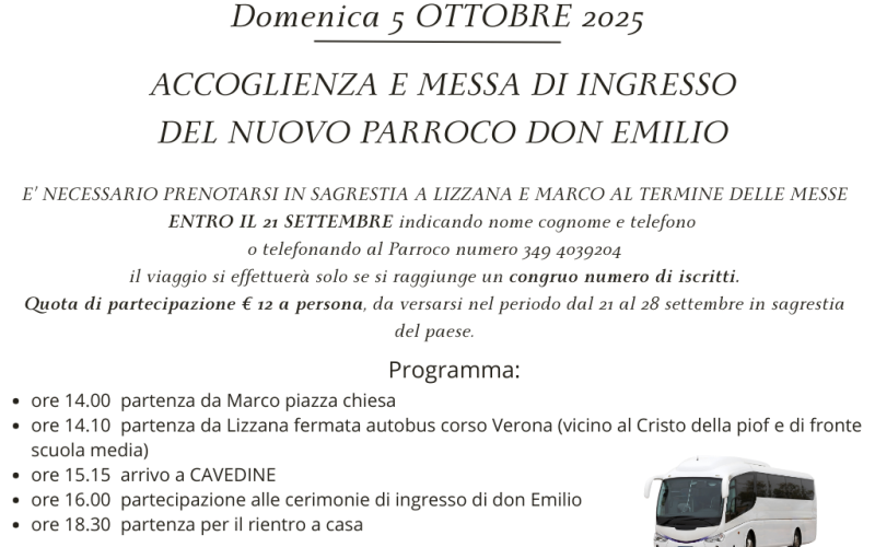 ore 16.00 a CAVEDINE S. Messa di ingresso di don Emilio